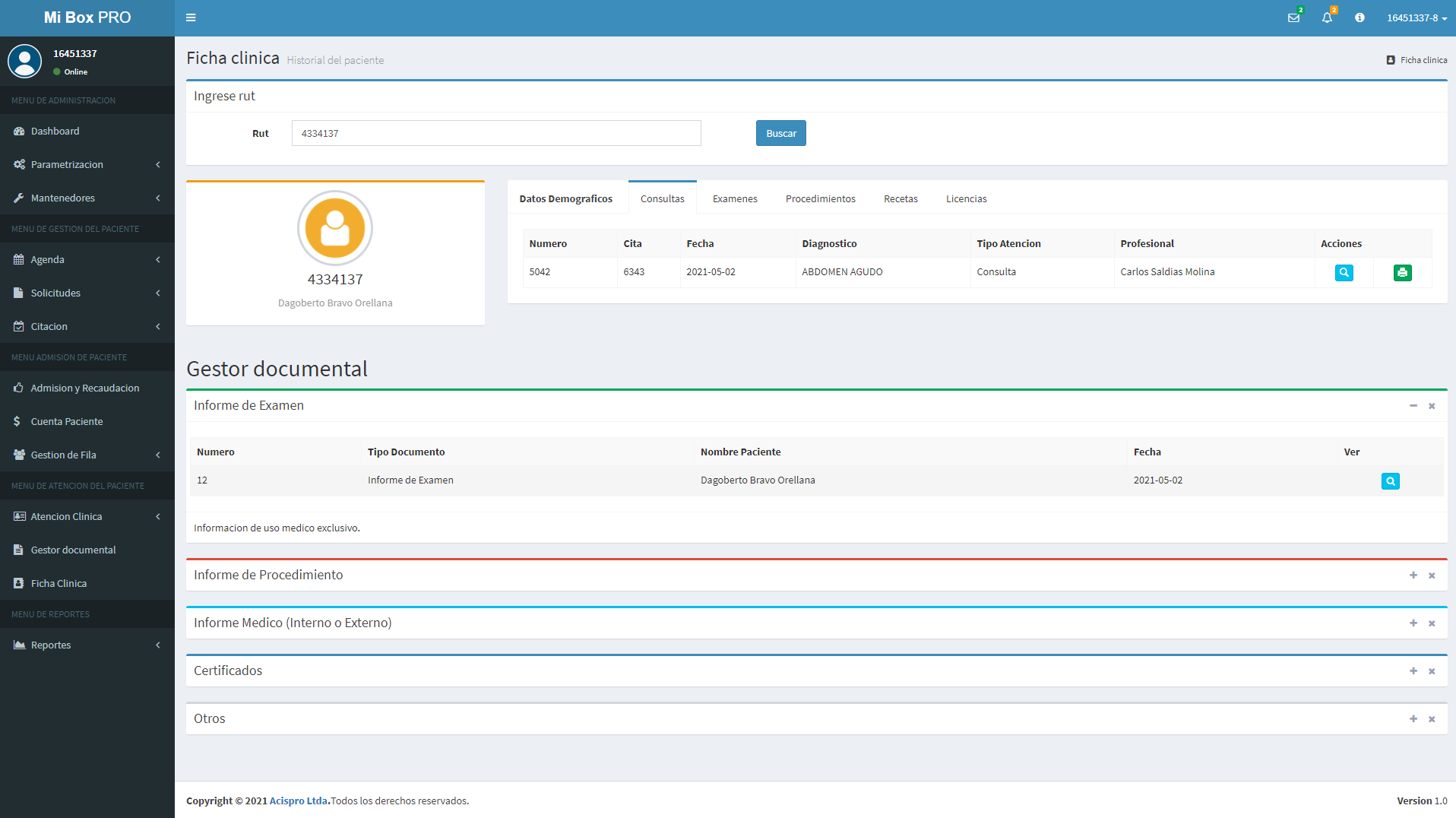 Mi Box Pro, es un sistema de gestión de agenda y de registro de atención los cuales se complementan con los procesos de admisión/recaudación, reportes y maestros de datos los cuales conforman un sistema solido y robusto para pequeñas empresas que gestionan la atención de sus usuarios.