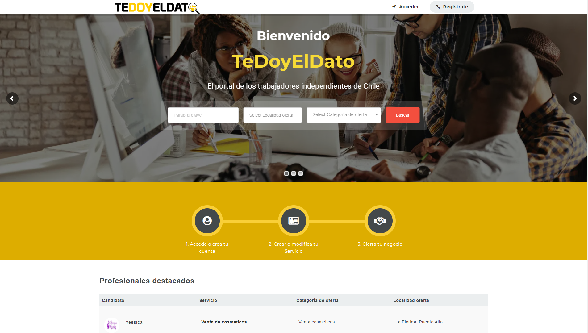 Portal de emprendedores, diseñado con el fin de publicar servicios por parte de proveedores y encontrar una amplia variedad de estos por parte de los usuarios.